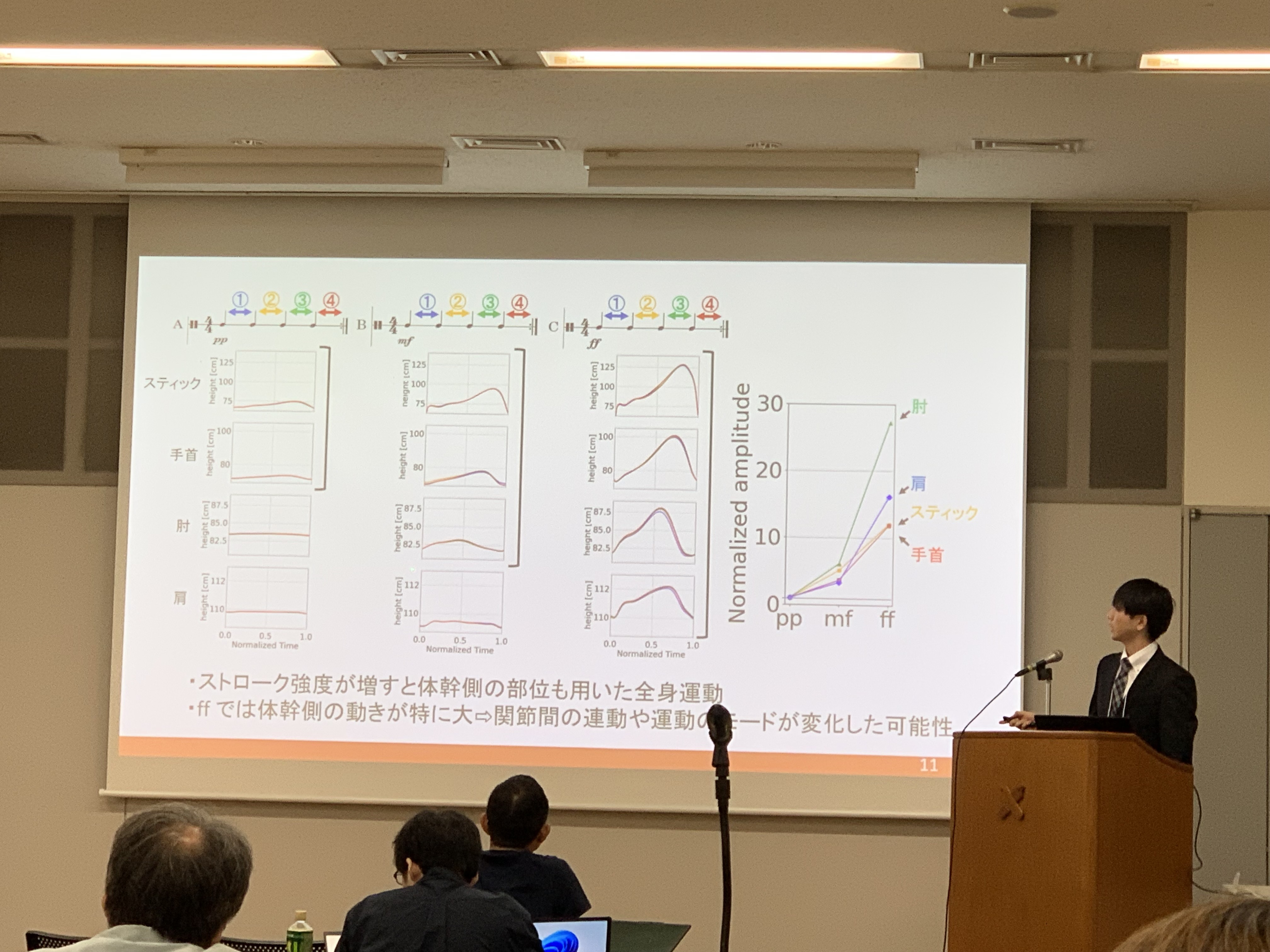 また他大学の方々の研究については、人気楽曲のコード進行の傾向の分析や、表現の難しい演奏要素をどうやって指導するのかというように研究対象が様々で、楽譜も対して読めない自分には難しい話もありましたが、多くの分野に対する知識がだいぶ深まったので、参加できてよかったと感じました。