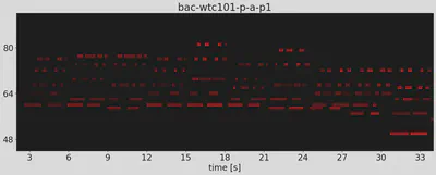 図で示すピアニストの演奏(CrestMusePEDB 第2版のサンプルより。上記Youtubeビデオとは別の演奏です)では,最高音は長く,2番目に高い音は短めで,3番目の音はやや長い。 最高音のみに注目しても,いつも同じ長さではなく,3,4倍くらいの長さの変動はある。また,1小節ごとの緩い周期的な変動をしていて,この揺らぎで小節単位のリズム感を表現しているらしい。